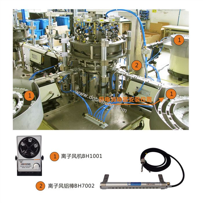 在距罩内后壁大约200mm,安装BH1001或BH7004A静电消除器,消除产品上的静电。